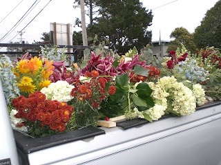 Walking around Point Reyes Station on Saturday morning we were delighted to see this festive truck and wondered about it. Later we bumped into the driver and passenger -- and when we asked...the woman responded, "He proposed! I work in the San Fransisco financial district and I saw him driving up yesterday -- and he asked me to marry him." She said YES. They were jubilant and cell-phoning friends and family to share the news. They seemed happy to be able to talk about it directly to us.